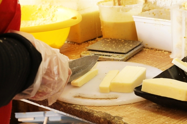 DIVISION: A block of mozzarella is split into equal parts to make the sticks.