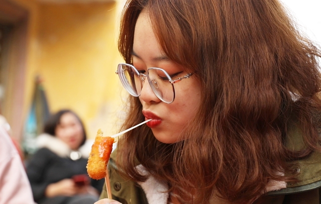 SNACK OFF: Fried cheese sticks are a popular street food for young people in Hà Nội.