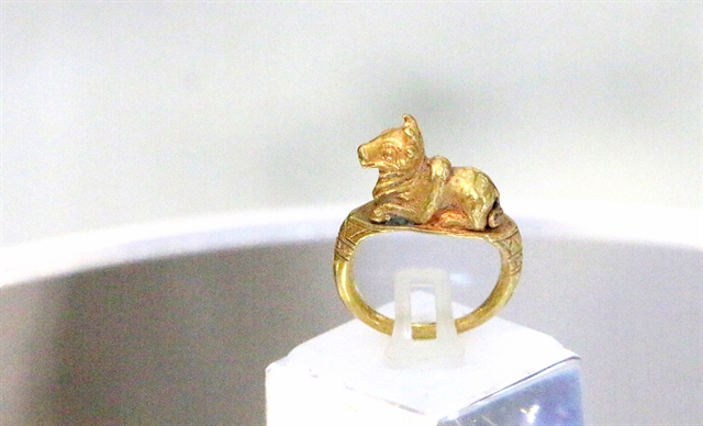 | The Golden Nandin ring, one of the national treasures found in the Óc Eo – Ba Thê archaeological complex. — VNA/VNS Photo Công Mạo |