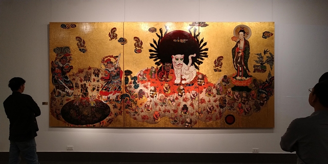HÀ NỘI — Contemporary artist Bùi Thanh Tâm is displaying his collection of paintings inspired by folk paintings of the Kim Hoàng, Đông Hồ and Hàng Trống movements and religious works created by ethnic groups.