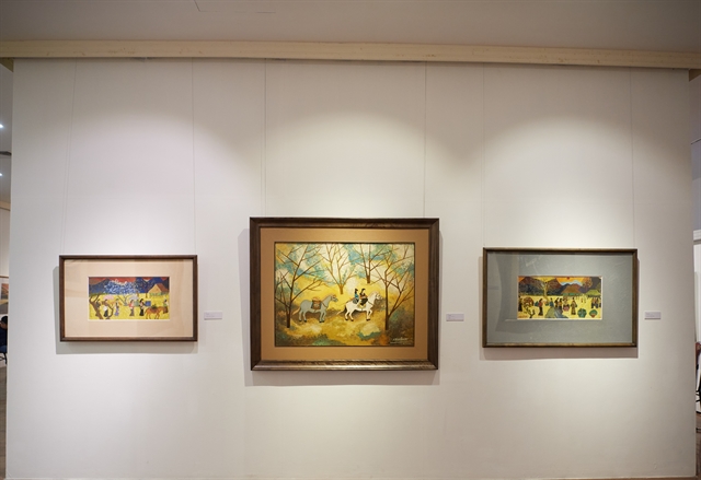 Some of 50 paintings at the exhibition are highlights from his long and distinguished career with a diverse theme focusing on daily life of ethnic groups in the northern mountainous region, landscapes, sketches, cinema posters and a set of seven sơn mài (lacquer) paintings.