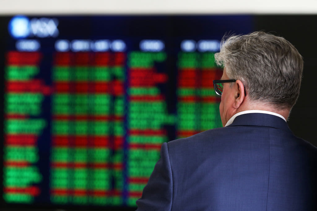 A man looks at an electronic board displaying stock information at the Australian Securities Exchange in Sydney, Australia, on Tuesday, Feb. 6, 2018.