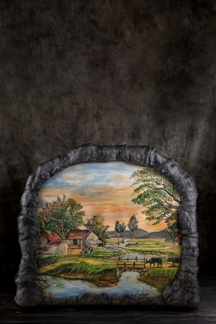 | A picture depicting the Vietnamese countryside on a cake canvas. |