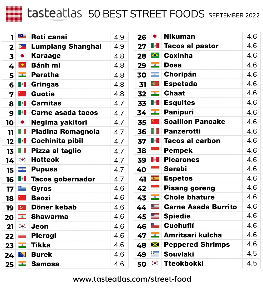 From Vietnamese bread to Mexican Gringas, all are listed by Taste Atlas as one of the world’s best street foods after a survey of readers around the planet was conducted in September of this year.