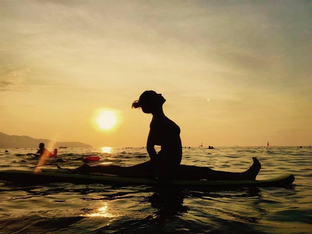| A yogi poses on a surfboard in Đà Nẵng. Many promotion programmes are being offered to the key South Korean tourism market in the second half of 2024. — Photo courtesy of Kim Thư |