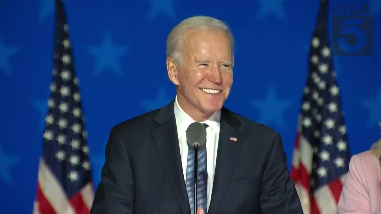 In a brief address on national television, flanked by American flags and his vice presidential pick Kamala Harris, Biden said he wasn’t yet declaring victory, but said that “when the count is finished, we believe we will be the winners.”