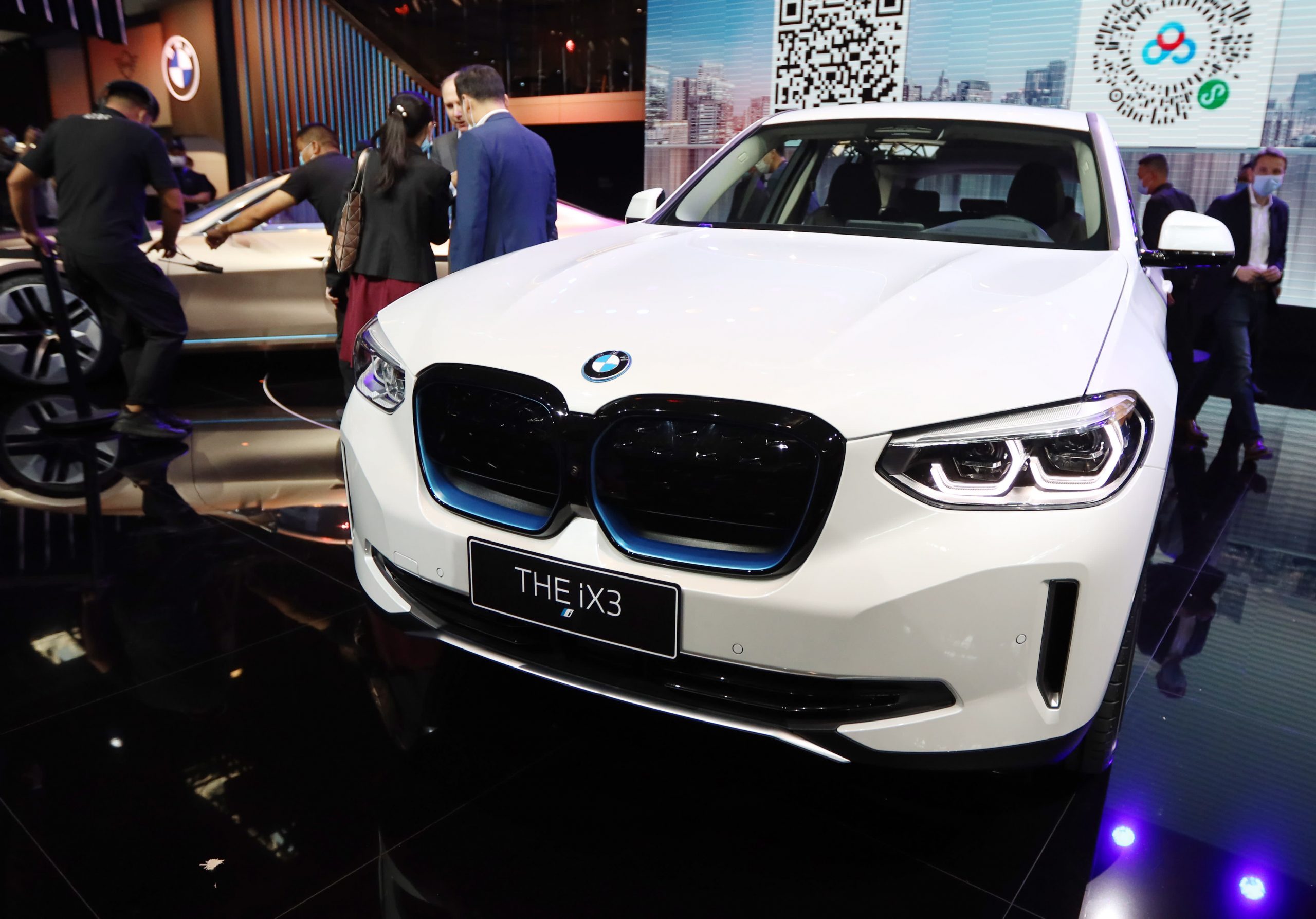 A BMW iX3 electric SUV is on display during 2020 Beijing International Automotive Exhibition (Auto China 2020) at China International Exhibition Center on September 26, 2020 in Beijing, China.