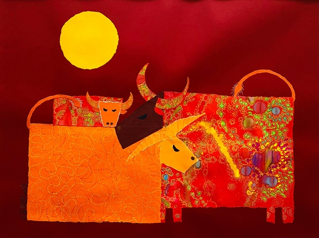 For the Đón Trâu vàng 2021, Liên has created three paper collage paintings.