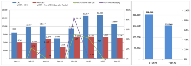 The number of cars sold in Vietnam decreased by 14% month-on-month and 4% year-on-year to 20,655 units in August, which is also the seventh month on lunar calendar, traditionally called “the ghost month” when locals avoid buying new valuable things on fear of bad luck.