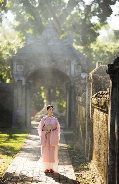 | A model in Áo Dài (traditional long dress) fashion walks through an old gate in Huế Monument Complex — an UNESCO-recognised world heritage site. — Photo courtesy of Thừa Thiên-Huế Province’s Culture, Sports and Tourism Department |