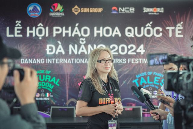 | Nadia Shakira Wong, director of Global 2000 Group, the Đà Nẵng International Fireworks Festival (DIFF)’s consultancy, shares her emotions of the event in an interview at the fireworks launching area. Photo courtesy of DIFF |