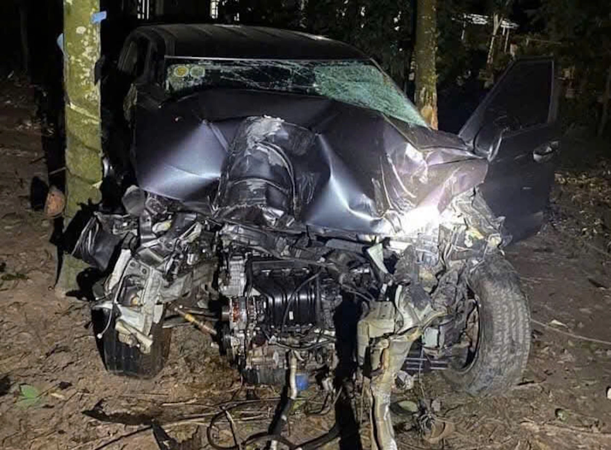 The vehicles were badly damaged, with the car only stopping after crashing into a rubber tree nearly 10 meters from the point of impact.
