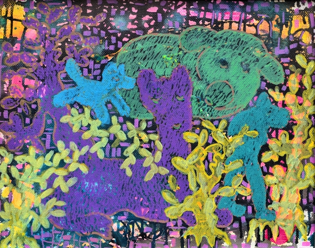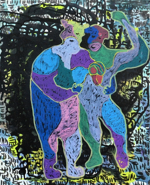 | ‘Gia Đình Nhỏ’ (Small Family), a painting with synthetic material, by Bùi Hoàng Dương. |