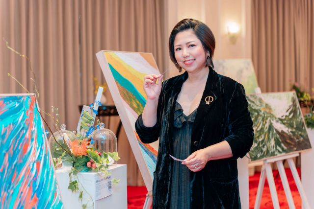 For Yến – her 12 paintings and 11 perfume works presented at the exhibition were inspired by her newest book Hành Trình Những Mùi Hương (Journey through Scents) published earlier this year.