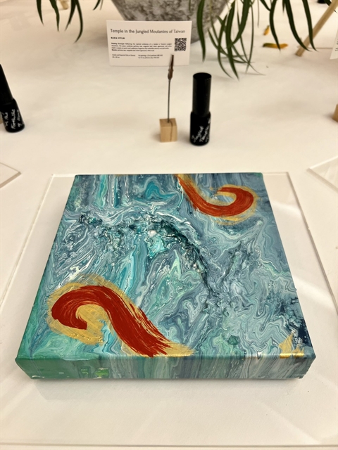 | The painting ‘Temple in the Jungled Mountains of Taiwan reflects the mystical ambiance of peaks with a perfume tree, magnolia leaf, black agarwood and white musk to create an exotic and meditative fragrance that embodies serenity and spirituality. VNS Photo Thúy Hằng |