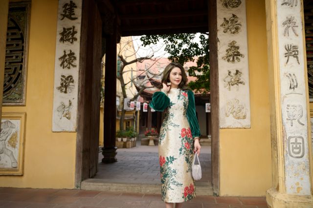 The main materials for the collection are velvet and embroidered brocade, creating a look that is both luxurious and vibrant, while evoking a distinctly Hanoian Tết atmosphere.