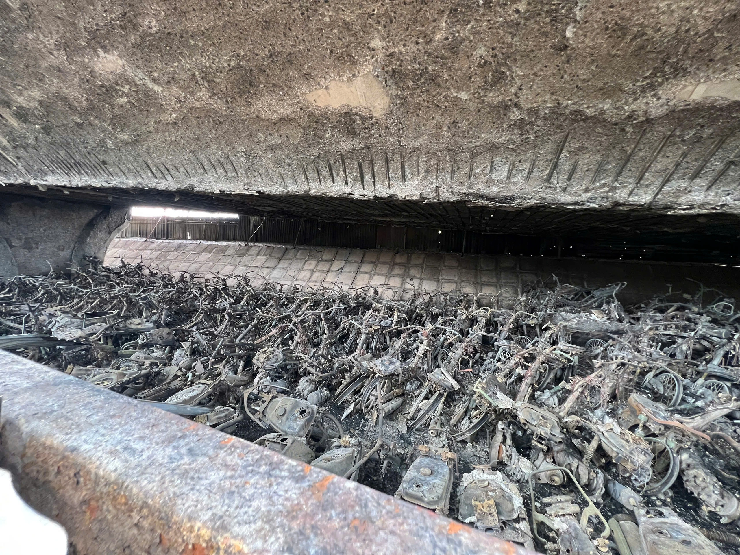 While hundreds of motorbikes were reduced to ashes, authorities confirmed no cars were damaged and no human injuries were reported.