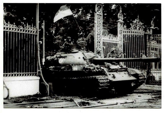 | The historic photo capturing the moment a tank of the liberation forces entering the Independence Palace on April 30, 1975. — Photo courtesy of Trần Mai Hưởng |