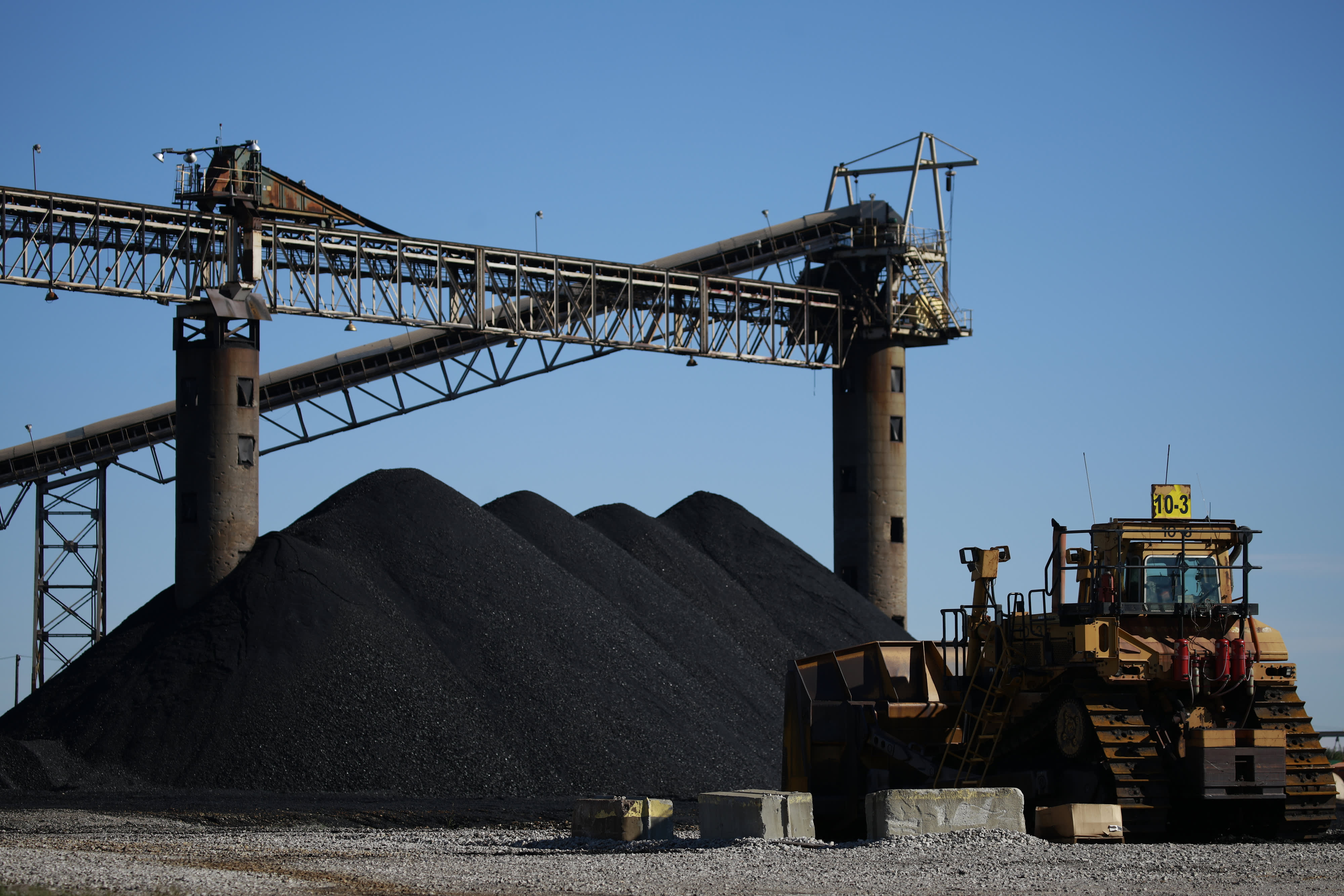 A bulldozer parked near a coal mound on the grounds of the Peabody Energy Francisco coal mine in Francisco, Indiana, U.S., on Thursday, Sept. 23, 2021.