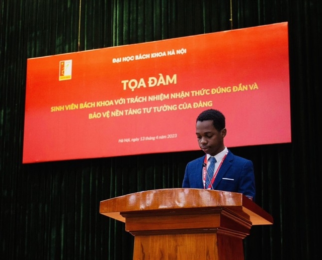| Oraiden Manuel Sabonete speaks at a student seminar on Safeguarding the Communist Party of Việt Nam’s Ideological Foundation. Photo courtesy of Sabonete |
