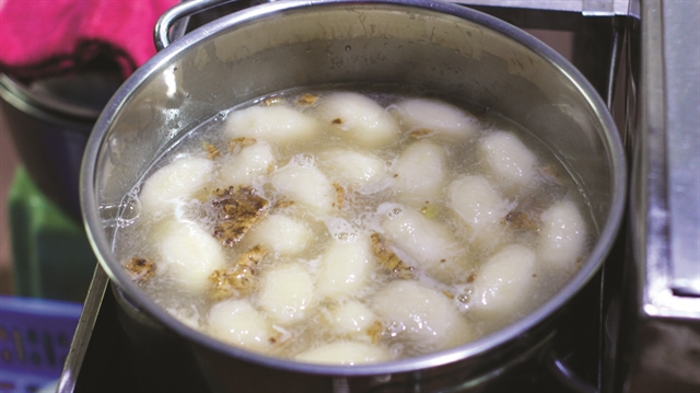 Trung also said the bowl of Southern floating cake usually has two identical balls, with green bean and coconut filling, cooked with white sugar and ginger sauce. When serving, the restaurant will add coconut milk and peanuts on top to enhance the flavour.