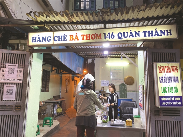 With traditional flavours of chè (sweet soup) dishes, Chè Bà Thơm has become a famous brand in Quán Thánh Street, Hà Nội for more than 40 years, and is still loved by diners today.