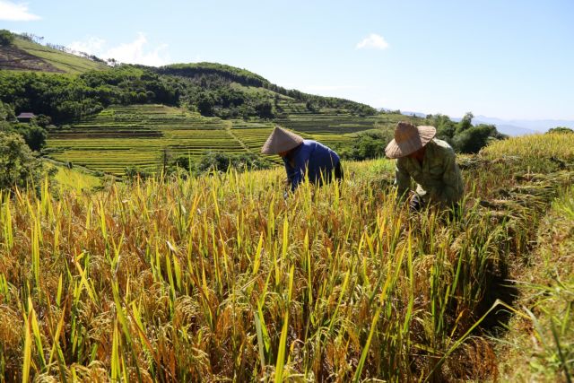 At present, farmers in the province are harvesting the winter-spring crop from their terraced fields. The golden fields, curving on the hillsides, create a stunningly picturesque landscape.