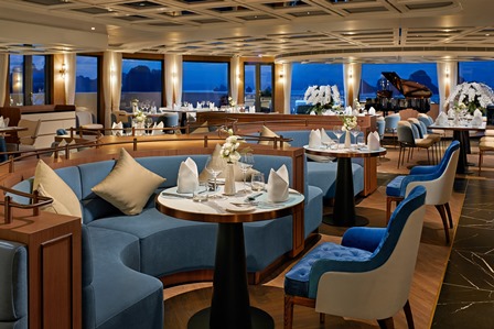 | A view of Restaurant Dining by the Bay of the Grand Pioneers cruise. |