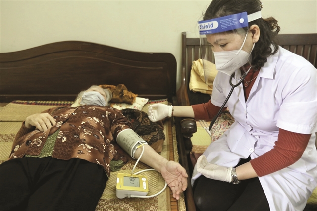 A doctor screening a patient before administering the COVID-19 vaccine at her home in Điện Biên Ward, Ba Đình District. — VNA/VNS Photo Minh Quyết