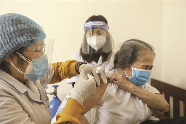 Administering a COVID-19 vaccine at a home in Điện Biên Ward, Ba Đình District. — VNA/VNS Photo Minh Quyết