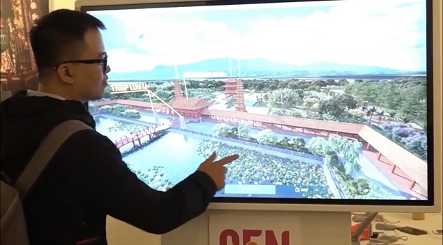 | Visitors experience calligraphy drawing using virtual reality technology at the Temple of Literature. — Photo thanglong.chinhphu.vn |