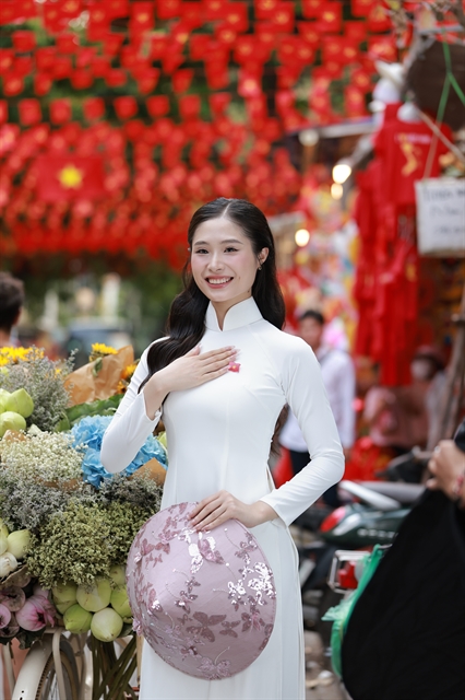 | A young woman wearing a traditional áo dài on Hàng Mã Street, Hà Nội. — VNS Photo Trương Vị |