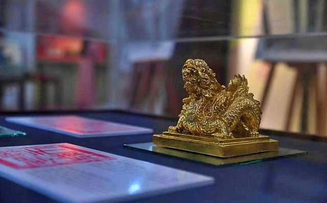 | National treasure ‘Ấn Sắc Mệnh Chi Bảo’ casted in the 8th year of Emperor Minh Mạng’s reign (1827). The golden seal symbolises the supreme authority of the Nguyễn Dynasty and was used to stamp imperial edicts conferring titles and honours issued by the royal court. — Photo congdankhuyenhoc.vn |