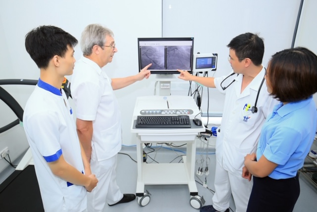 Dr. George Cloatre is a clinical cardiologist, and Dr. Ngô Chí Hiếu is an interventional cardiologist.