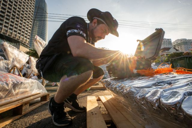 | A member of the Finnish team prepares fireworks for the launch on the opening night of the Đà Nẵng International Fireworks Festival on May 31. Photo courtesy of DIFF |