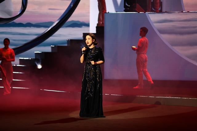 | Vietnamese diva Mỹ Linh performs at the award ceremony of the Human Act Prize 2023. |