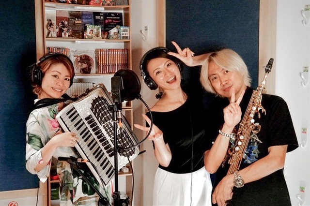 | Japanese singer Sakura Shirakawa (centre) and Vietnamese saxophonist Bảo Anh. — Photo anninhthudo.vn |