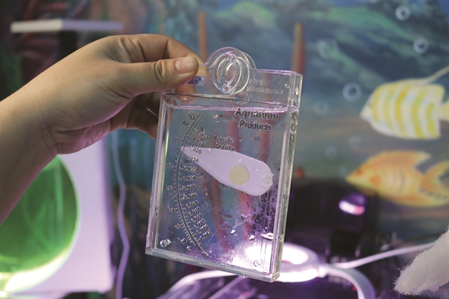 | Salinometer, a tool to precisely measure the percentage of salt in the water in a tank. – VNS Photo Hồng Linh |