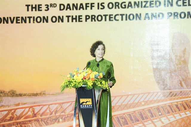 | Director-General of the United Nations Educational, Scientific and Cultural Organisation (UNESCO) Audrey Azoulay speaks at the opening ceremony. Photo Anh Vũ/DANAFF |