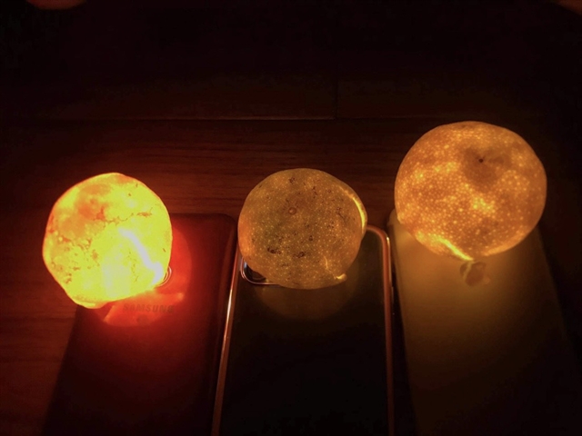 Making “mini-moons” from tangerine and grapefruit peels. — Photo courtesy of Mai Thanh