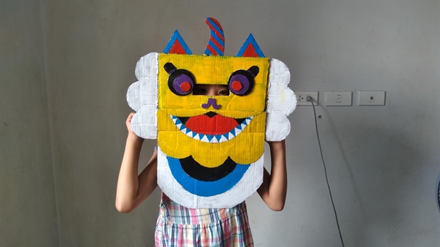 Also celebrating Mid-Autumn Festival at home this year, Đinh Duy, a photographer living in HCM City, decided to make a dragon head out of milk cartons for his children.