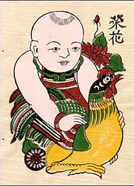 | ‘The Boy with Rooster’, a Đông Hồ folk painting featuring the words ‘Vinh Hoa’ (glory and prosperity) in the background, symbolises high social standing, success and wealth, and is traditionally displayed during Tết (Lunar New Year). |