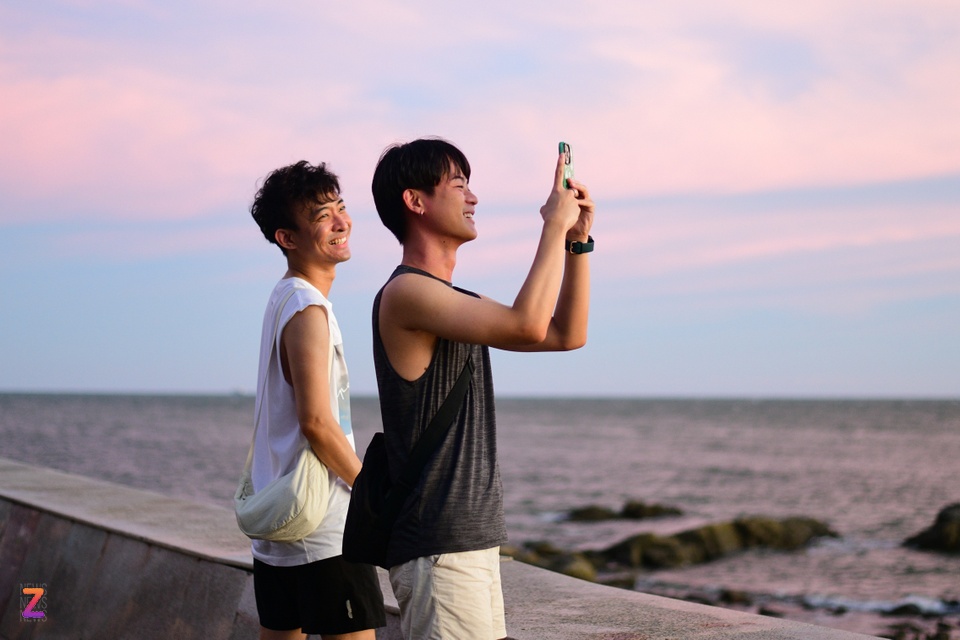 2 male international tourists “hunt” for sunset in Vung Tau. Photo: Linh Huynh.