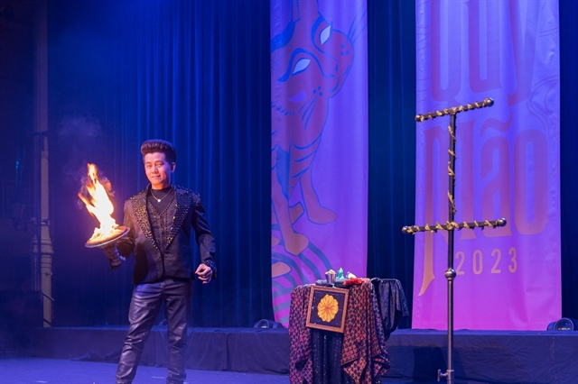 | CIRCUS ACT – Magic artist Trần Dũng performs at the fourth National Magic Festival 2023 in HCM City, which opened November 8. Photo courtesy of the organiser. |