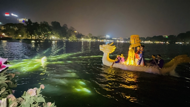 | The legend of Lê Lợi King (1428-1433) returning a magic sword to the golden turtle is the highlight of the night time show. — VNS Photo Lê Hương |