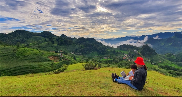 A mother horse and her calf on top of Ngải Thầu, a scenic spot best to watch the sunset in Bắc Hà. — VNS Photo Bùi Oanh