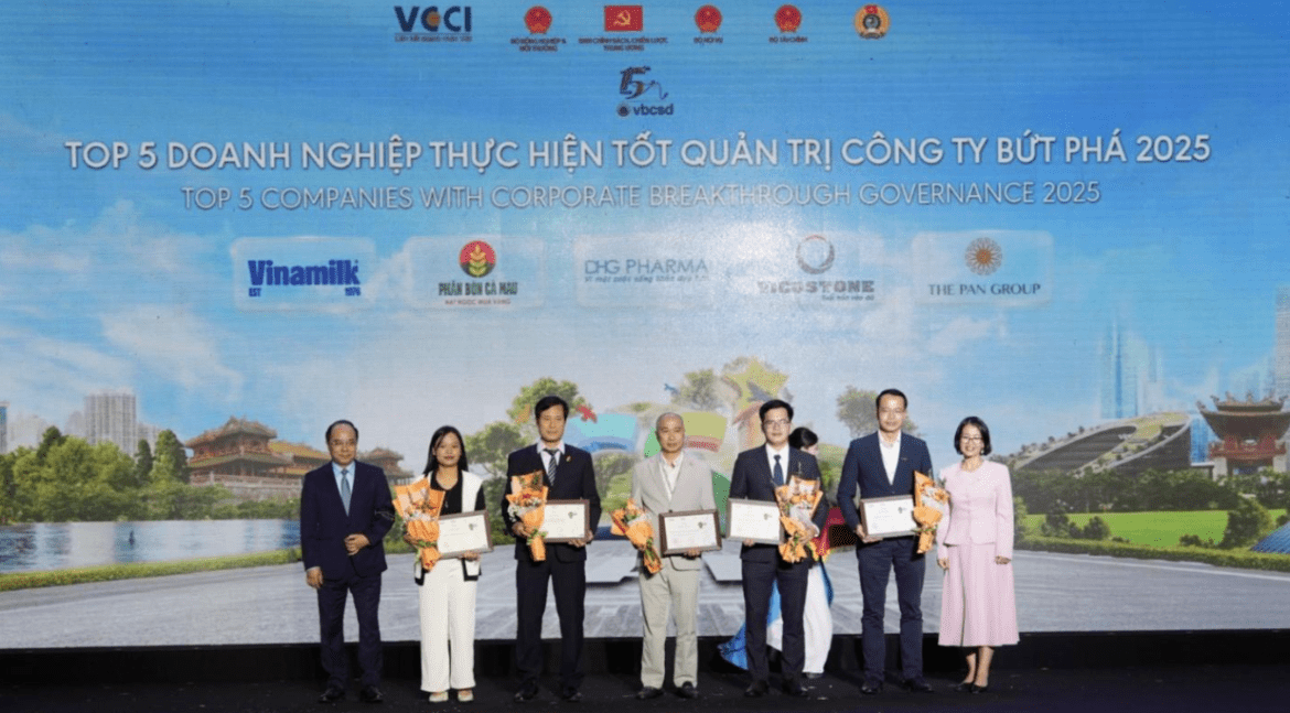 Hà Nội, ngày 5 tháng 12 năm 2025 — Liên đoàn Thương mại và Công nghiệp Việt Nam (VCCI) vinh danh Tập đoàn Phenikaa trong Top 10 Doanh nghiệp bền vững trong lĩnh vực sản xuất năm 2025. Đây là năm thứ 08 liên tiếp Phenikaa được Chương trình đánh giá, công bố Doanh nghiệp bền vững tại Việt Nam (CSI 100) ghi nhận vì sự tiên phong và sáng tạo trong việc thực hiện chiến lược phát triển bền vững. Bên cạnh đó, CTCP Vicostone – một đơn vị thành viên của Tập đoàn tiếp tục giữ vững vị thế tại Top 100 và được vinh danh thêm tại hạng mục “Top 5 Doanh nghiệp thực hiện tốt quản trị công ty bứt phá 2025”.