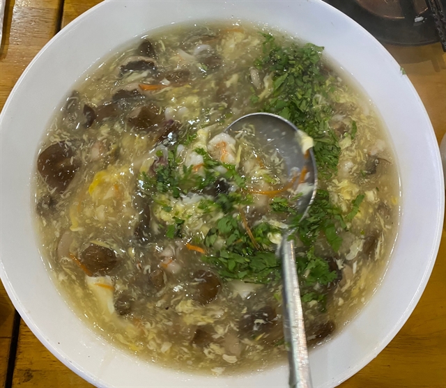 | A bowl of thick soup with mushroom, seafood and egg. VNS Photo Lê Hương |