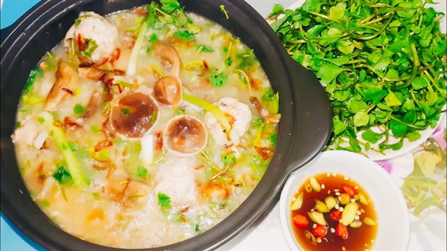 Porridge with Phú Quốc cajuput mushroom has a fatty taste and a little bit bitter, which is said to be good for people with a headache, tiredness and flu.