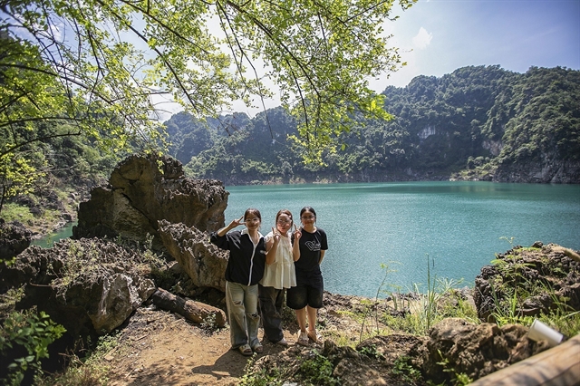 | Tourists take photos in front of Mắt Ngọc Lake in Phú Thọ Province. — VNA/VNS Photo Trọng Đạt |
